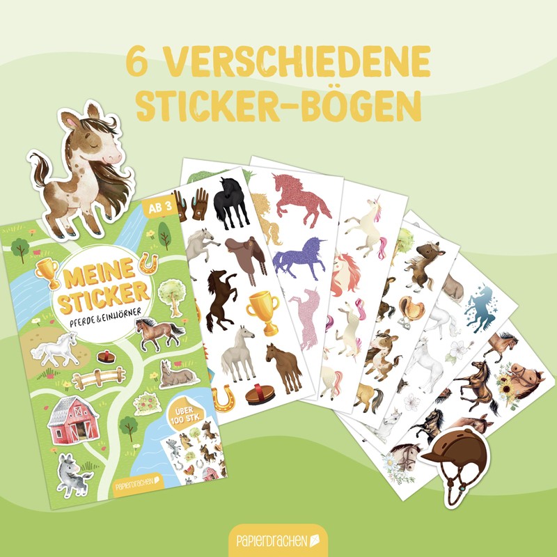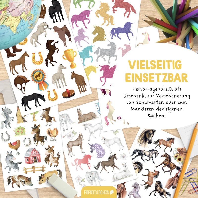 Papierdrachen Sticker Block Horses and Unicorns - Over 100 Versatile Stickers | Perfect for Creative Design | Great Gift Idea Set 3