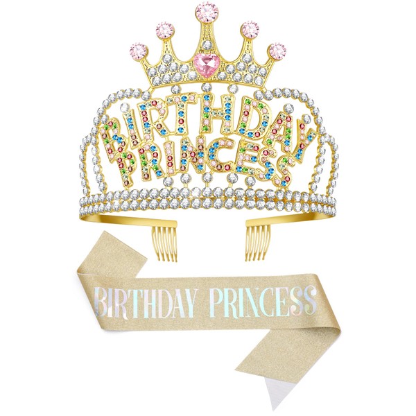 Papoopy Birthday Tiara and Crown with Sash, Birthday Sash for Birthday Party (Multi)