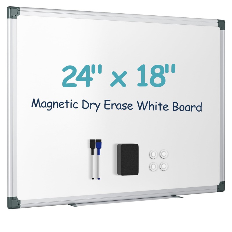 Paporia 24"x18" White Board for Wall, Aluminum Frame Dry Erase Board, Hanging Magnetic Whiteboard with 1 Eraser & 2 Markers & 4 Magnets for Home, School, Office, Dorm Room, Classroom