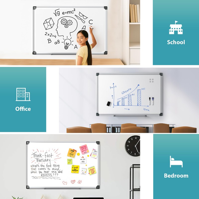 - 【Durable Aluminum Frame & Sturdy Construction]】 Crafted with a robust aluminum frame, this white board dry erase offers exceptional durability and longevity. The sturdy construction ensures it remains warp-resistant and stable, making magnetic board ideal for daily use in offices, classrooms or home settings