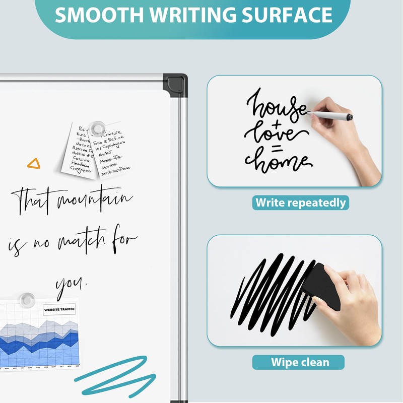 - 【Smooth Surface & Effortless Erasing】Enjoy a flawless writing experience thanks to the ultra-smooth whiteboard surface that glides effortlessly under your markers. The specially designed eraser wipes clean without leaving ghosting, smudges or residue behind. Maintain a crisp, clear surface presentation every time with zero maintenance hassle