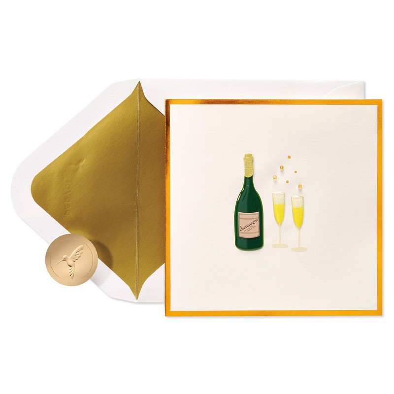 - This celebratory anniversary card by Papyrus features a bubbly design with beads and epoxy and is perfect for celebrating the happy couple!