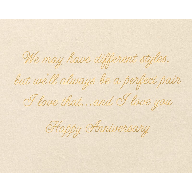 - Inside Message: We may have different styles, but well always be a perfect pair. I love that... and I love you. Happy Anniversary