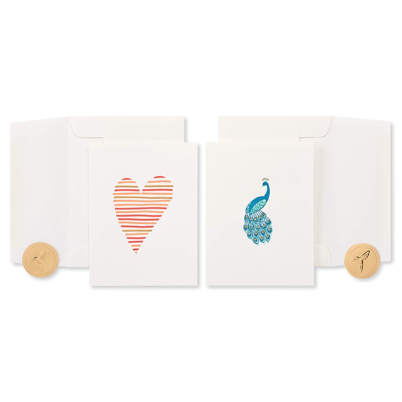 Papyrus Blank Cards with Envelopes, Heart and Peacock (2-Count)