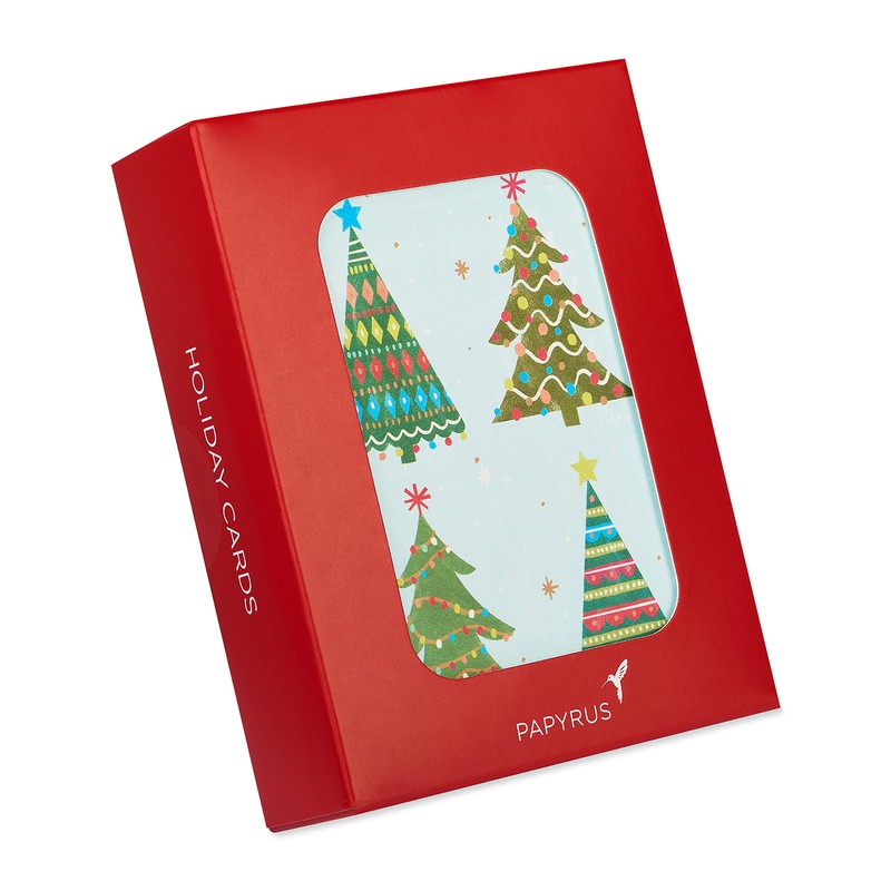 Papyrus Boxed Christmas Cards with Envelopes, Joyful Celebration, Christmas Trees (20-Count)