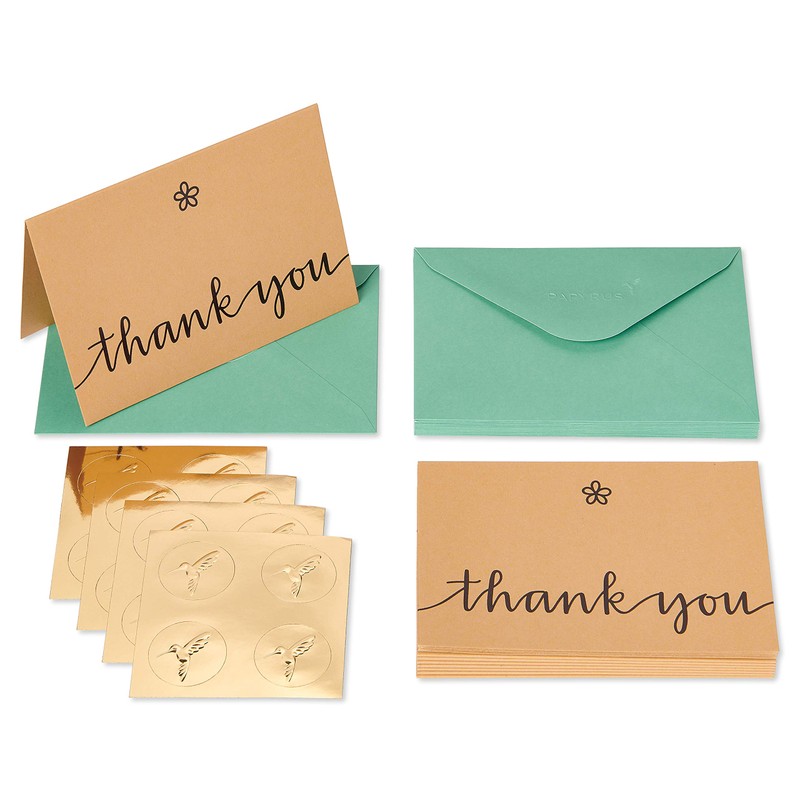 - This Papyrus stationery cards set features trendy, hand-lettered thank-you cards crafted with upscale kraft paper.