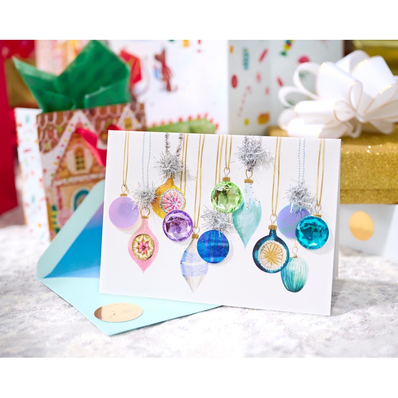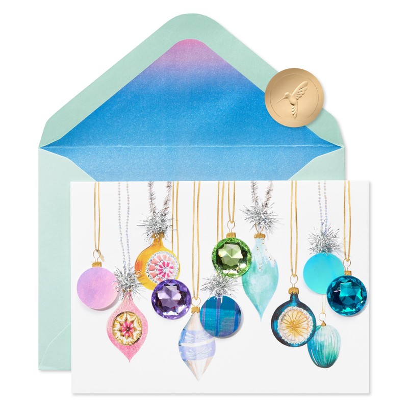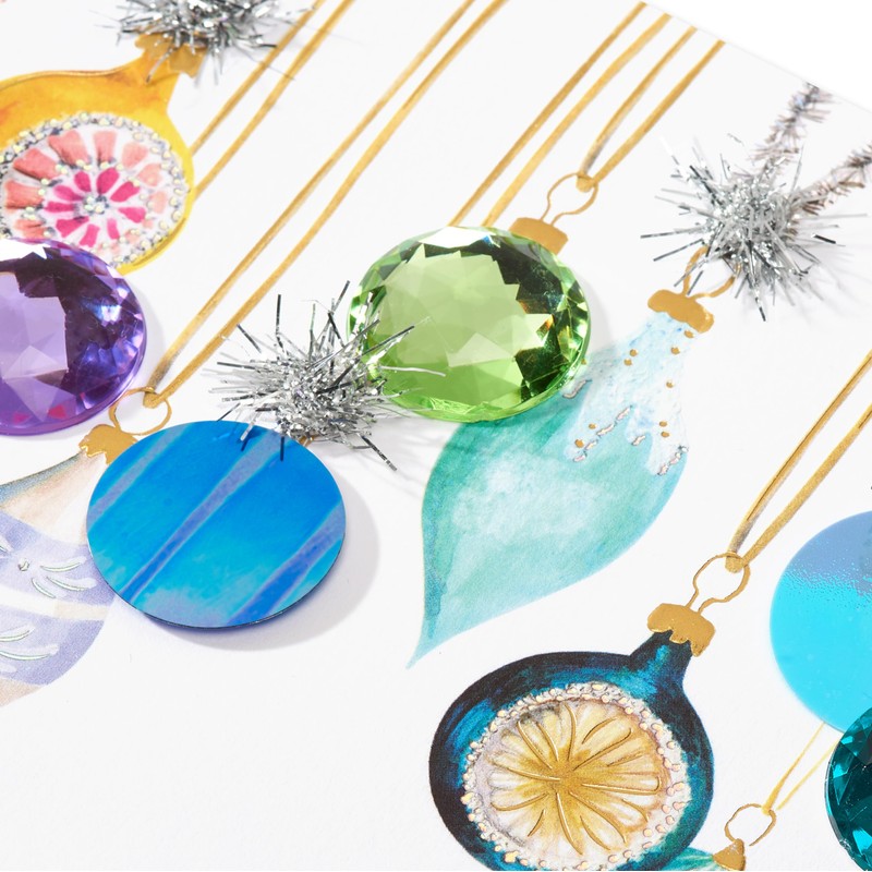 • Papyrus greeting cards offer premium style like this Holiday card that is richly embellished with gems, sequins, tinsel, and pom-poms