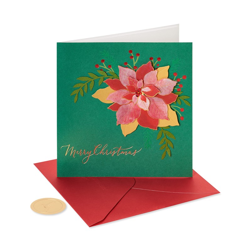 - Papyrus holiday cards offer premium style and sophistication, like this beautiful design of a classic Christmas poinsettia.