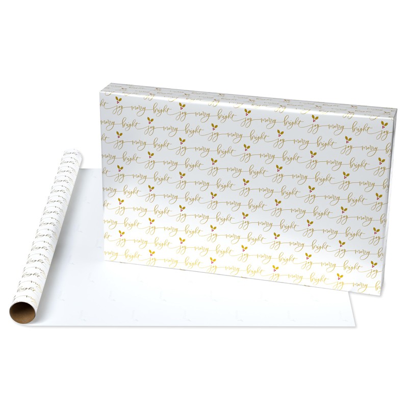 - Papyrus Christmas wrapping paper comes with 3 designs including leaves, polka dots, and merry bright joy pattern
