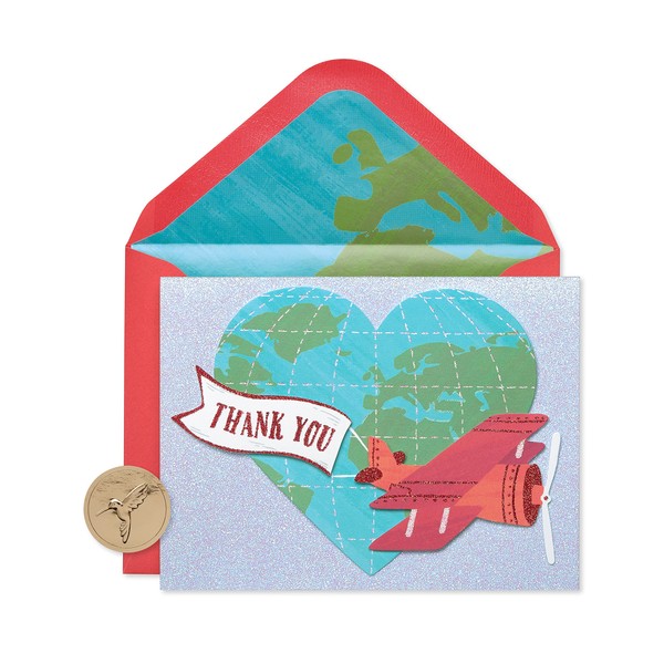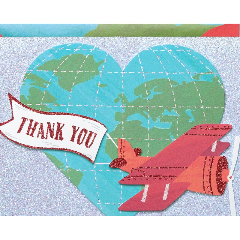 Papyrus Thank You Cards with Envelopes, Globe and Plane with Glitter (8-Count)