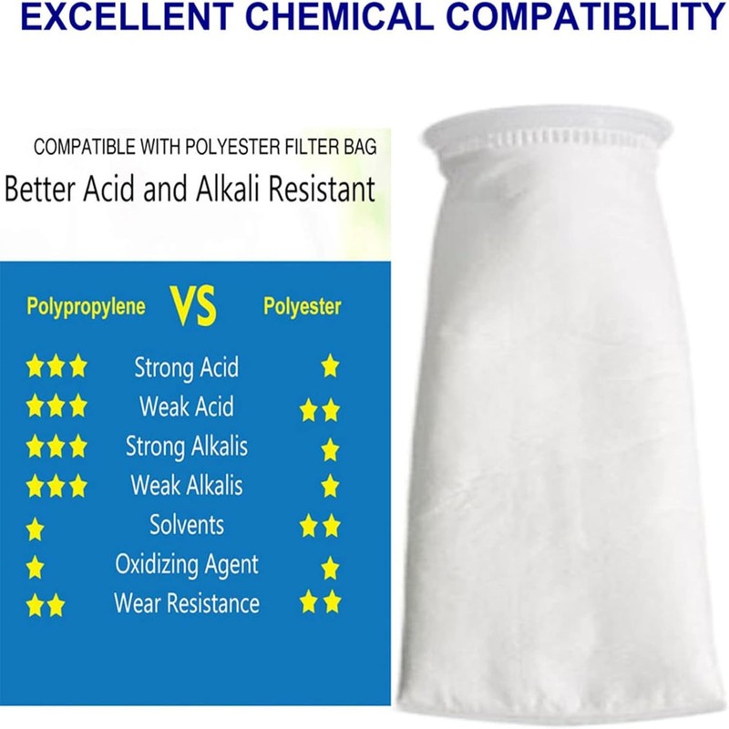 Resistencia a ácidos débiles, álcalis fuertes, disolventes, aceite, biodiesel, combustible, agua y microorganismos, resistencia a altas temperaturas de 90 grados celsius. Adecuado para acuarios, peceras, bebidas, biodiesel, productos químicos, etc. Construcción robusta y calcetines de costura pesados robustos, reutilizables en varias ocasiones.Al usar la bolsa de filtro, asegúrese de elegir el nivel de micra correcto.Un error de tamaño puede bloquear rápidamente la bolsa de filtro.