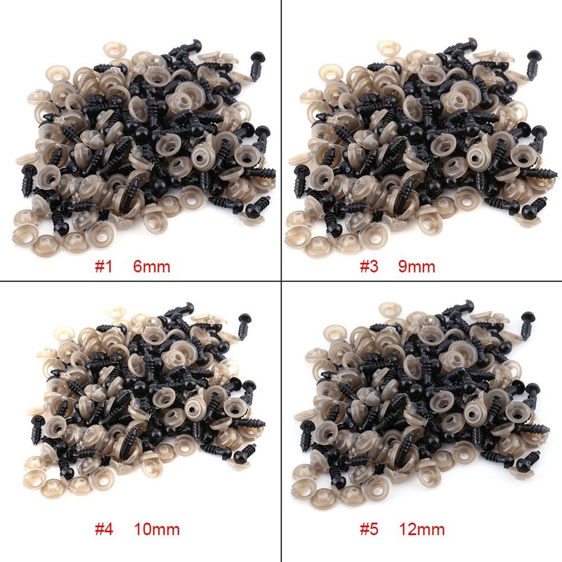 - Tamaño: aproximadamente 6,9,10,12 mm de diámetro; aproximadamente 100 piezas de ojos de plástico y 100 piezas de lavadora correspondiente.