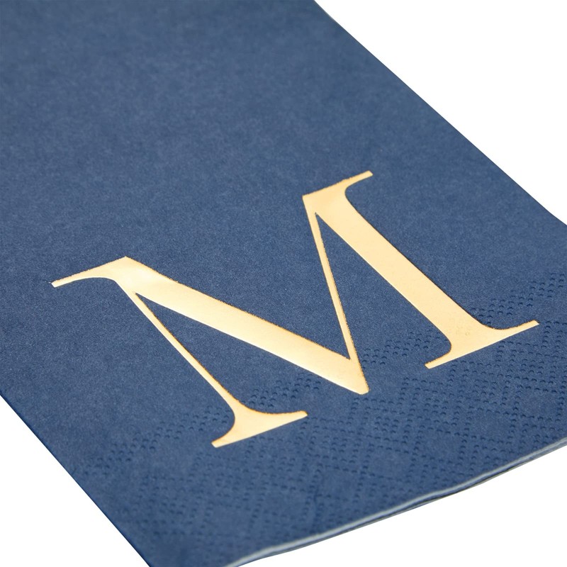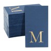 Paquete de 100 servilletas con monograma azul marino con letra M, inicial de lámina dorada para recepción de boda, fiesta de compromiso (4 x 8 pulgadas)