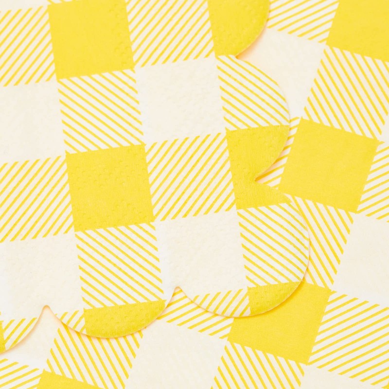 • Protege tus superficies: las servilletas decorativas cuentan con diseños de cuadros amarillos con bordes festoneados que elevarán las decoraciones de tu fiesta mientras que simultáneamente mantienen tus mesas limpias y libres de manchas causadas por bebidas y alimentos