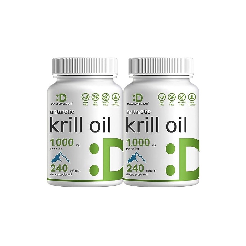Paquete de 2 aceite de krill antrtico 1300 mg, 120 cpsulas blandas, sin arbustos, rico en fuente natural omega-3s EPA, DHA y astaxantina, suplemento