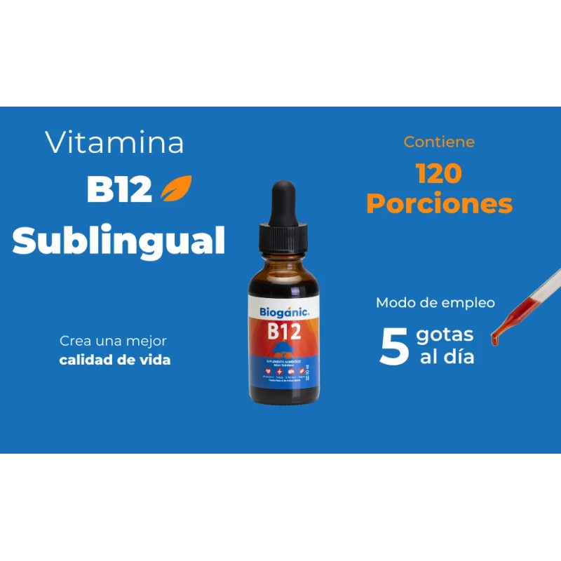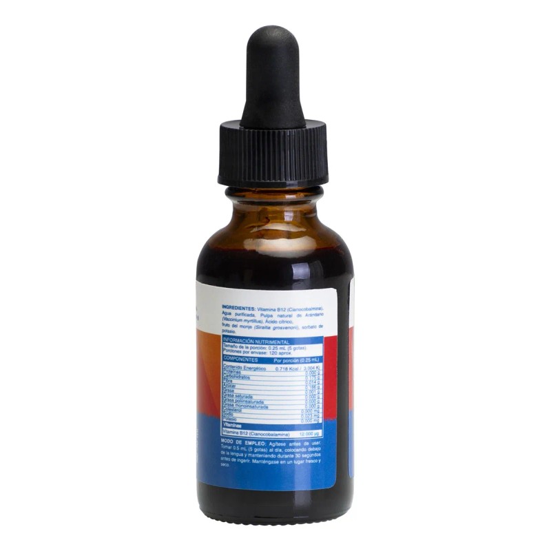 Paquete de 2 Botellas Vitamina B12 Lquida Sublingual Bioganic Vegana, Sin Azucar, Sin Gluten, Sabor Arndano, 240 Tomas en Total 120 Tomas por...
