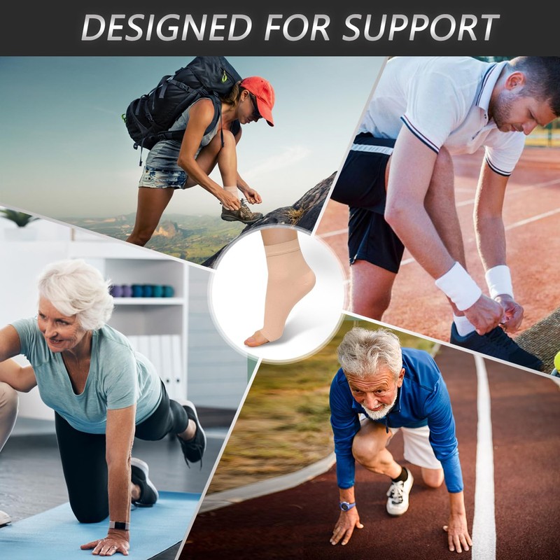 - 🎁Alivio de la fascitis plantar: usa estas mangas de compresión de tobillo debajo de tus zapatos y calcetines para aliviar el dolor en tus talones causados por fascitis plantar, lesiones, esguinces de tobillo, tendinitis de Aquiles, edema, espolones de talón, venas varicosas, arcos caídos, linfedema, tobillos hinchados. Nuestra tobillera sin dedos apoya tu pierna todo el día.