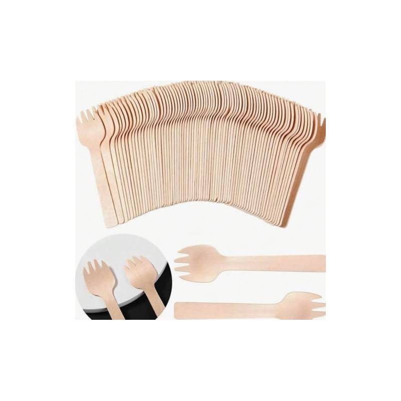Paquete de 200 CucharaTenedores Desechables de Madera MINI. - Medida: 10 cm - Ecologicas y compostables. - Ideal para Helado o pastel - El complemento perfecto para tu fiesta.