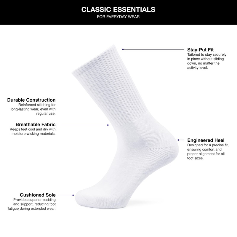 Paquete de 3 calcetines para hombre, ligeros, duraderos y cómodos para uso activo y diario, Blanco, 10-13