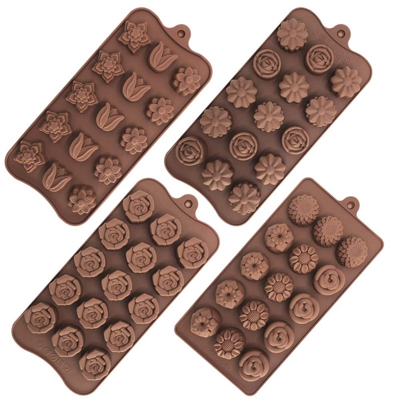 Paquete de 4 moldes de silicona con forma de flor, molde de silicona DanziX para bodas, festivales, fiestas, entusiastas del bricolaje, 15 cavidades