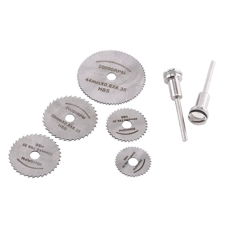Paquete de 5 piezas con hoja de sierra circular HSS Mini, juego de cuchillas con 2 varillas de extensión para herramienta rotativa