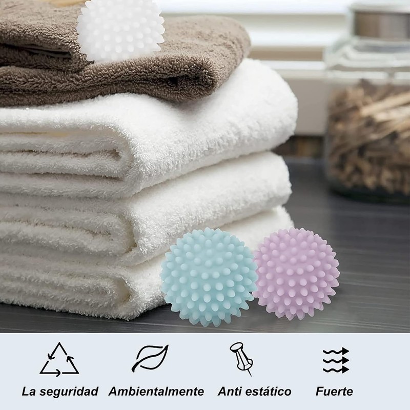 - 【Diseño Práctico】 La bola de lavandería ayuda a acelerar la circulación de aire en la superficie de la ropa y evapora rápidamente el vapor de agua en la superficie de la ropa, seca la ropa rápidamente y reduce la electricidad estática y elimina las arrugas, enredos y torceduras de la ropa.