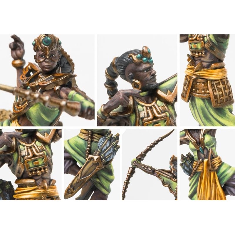 Conquest: Sorcerer Kings: Dhanur Disciples The wealth and stability provided by the Sorcerer Kings in the Enclaves has allowed them to devote themselves almost exclusively to the perfection of their art and the pursuit of knowledge. Archery, and its perfection, is the main focus on the Dhanur, a centuries old military treatise that has been compiled and recompiled for centuries among the Enclaves. The only real need the Enclaves have is defense against the Free Khanates, and to this end, those that devote themselves to the mastery of the bow do so with a zeal unmatched anywhere in the world. Well-trained in the traditional ways of archery, the Dhanur offer ample ranged support to their Rajakur brethren. Their excellent ranged output also makes them prime entourage for spellcasting characters who wish to focus more on the meticulous preparation and casting of rituals rather than joining the thick of the combat. In Game Role:- Battlefield Role: Mainstay Ranged Infantry- Class: Medium- Type: Infantry Product includes:- 12 x Plastic miniatures- 3 x Infantry plastic stands- 12 x Bases- 1 x Command cardProduct Part Number: PBSK103