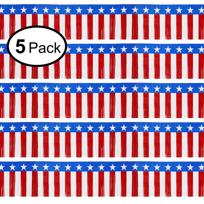 Parade Floats Foil Fringe Skirting Decorations - Pack of 5 - Each 15" x 10 Feet Long American Flag Stripes and Stars Metallic Tinsel Patriotic Garland for 4th of July, Homecoming or Christmas Float