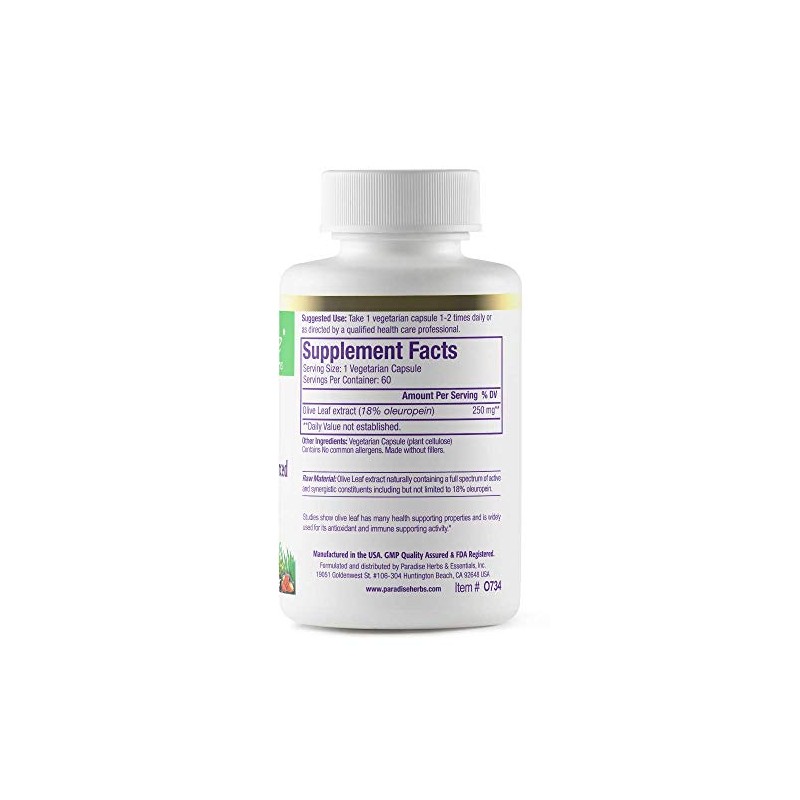 Paradise Herbs Olive Leaf Extract from Spanish Andalusian Olive Trees, Non GMO, Vegan, Gluten Free, 60 Vegetarian Capsules