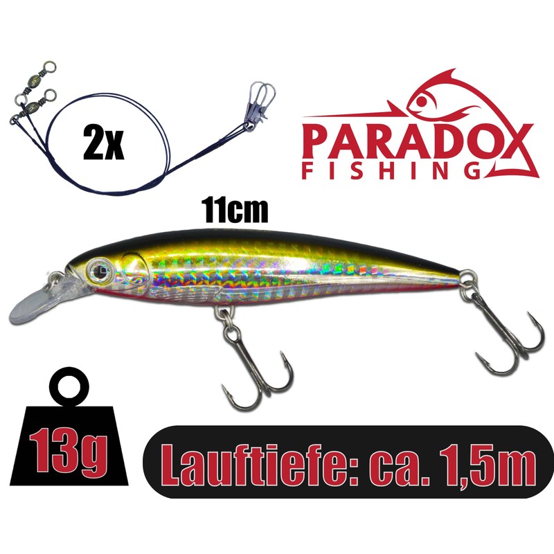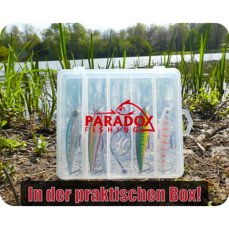 Paradox Fishing Premium Zander Wobbler Set I 4 Pieces 13 g 11 cm with Box I Pike Bait Zander Bait Perch Bait