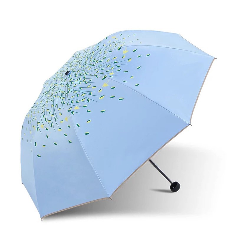 Paraguas plegable de viaje con protección UV UPF 50+, resistente a la lluvia, tamaño compacto, plegable en bolso (azul)