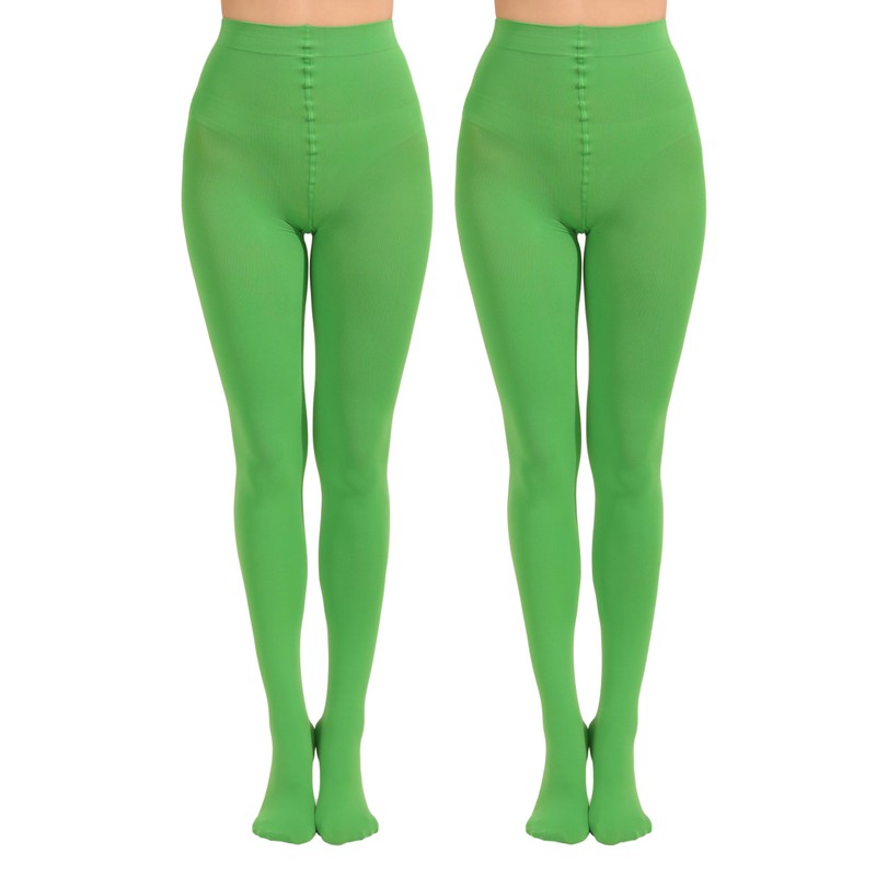 Paralinda 2 Pairs Women's Solid Color Tights 80D, Soft Opaque Microfiber Tights (Clover Green, S/M)