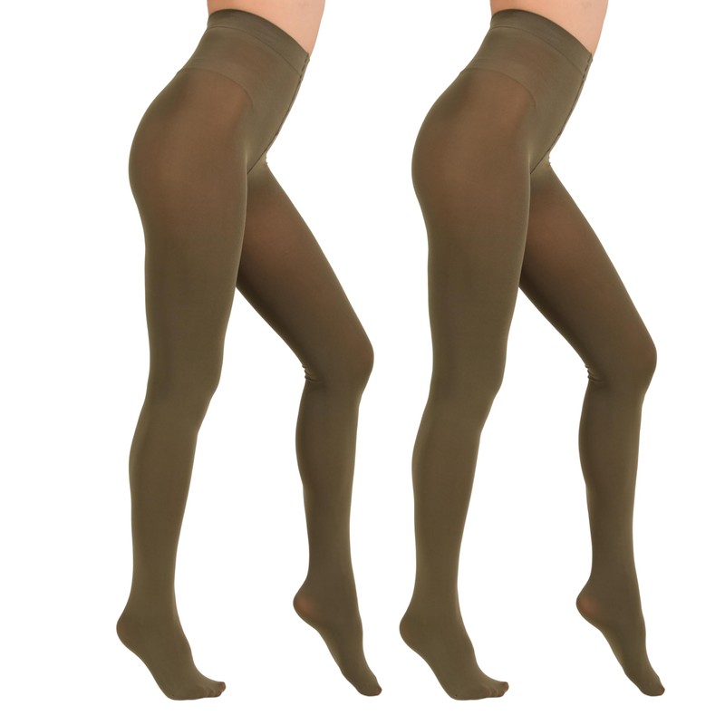 Paralinda 2 Pairs Women's Solid Color Tights 80D, Soft Opaque Microfiber Tights, Olive Green, Large-X-Large