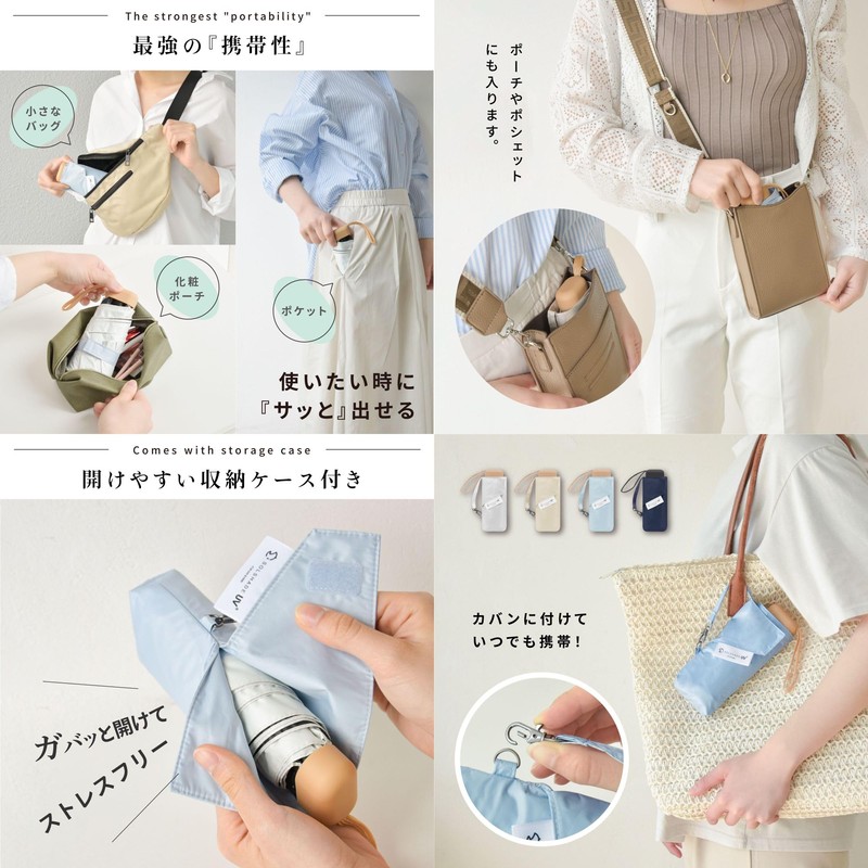Parasol, Foldable, Ultra Lightweight, Only 7.1 oz (205 g), Mini Folding Umbrella, For Both Sunny and Rainy Weather, Completely Light Blocking, 100% Light Blocking, UPF50+ UV Protection, UV Protection,