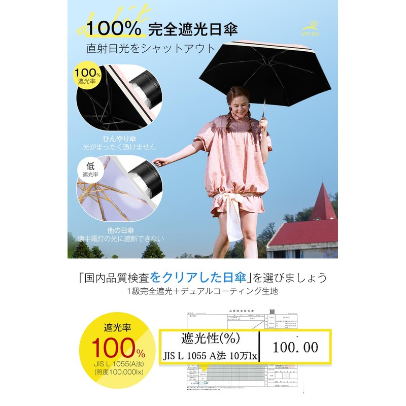 Parasol [JIS Certified, UV Protection, 100% Light Blocking, Heat Shielding], Folding Umbrella, Ultra Lightweight, Compact, UV Protection, Sun Protection, Sun Protection, Rain or Shine, Convenient to