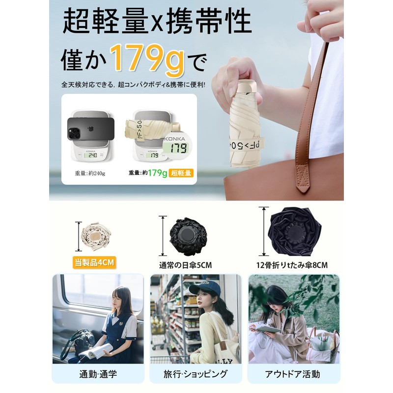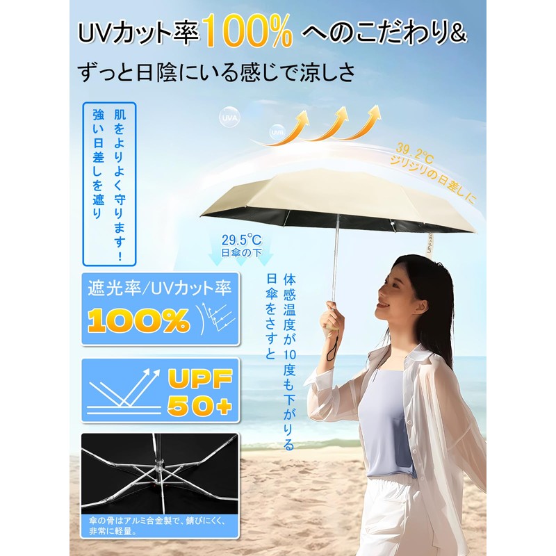 Parasol, Ultra Lightweight, 6.3 oz (189 g), UV Protection, Full Light Shielding & UPF 50+, Foldable, Aviation Aluminum, Rust Resistant, Heat Blocking, UV Protection, Sunstroke Protection, Heatstroke