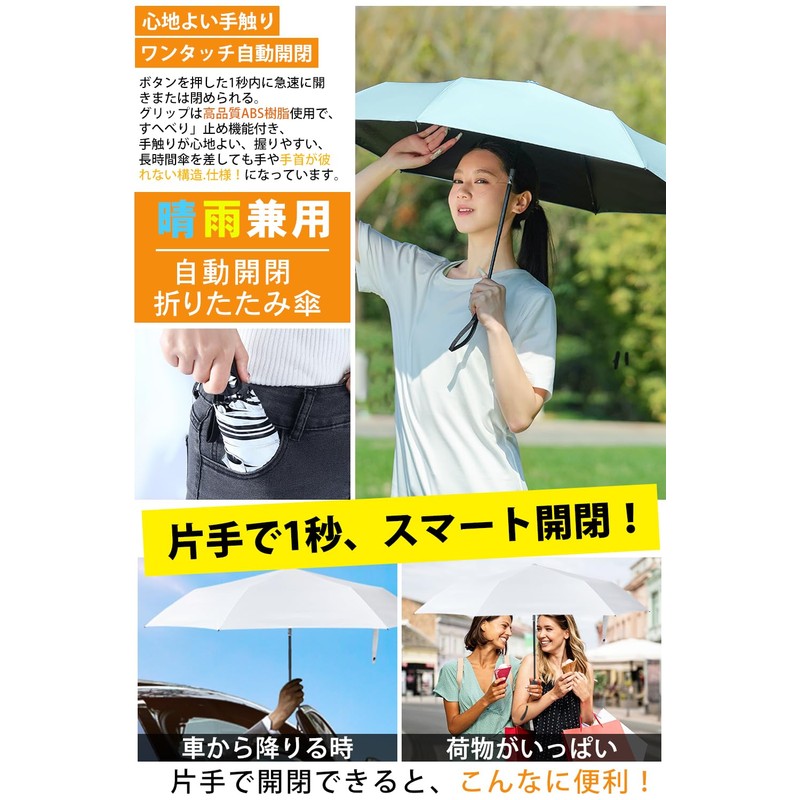 - Folding Umbrella, One-touch Automatic Open/Close: The parasol can be opened and closed with a single touch of a button. This folding parasol can be opened and closed with a single touch. It is very convenient for you to quickly shut out UV rays and rain by simply removing the umbrella and pressing the button. It is very useful when you get in or out of a car, have a baby, carry your luggage, or have only one hand. The large size of 37.8 inches (96 cm) when opened, and the larger shade range will cover your feet and protect your skin from sun rays and UV rays