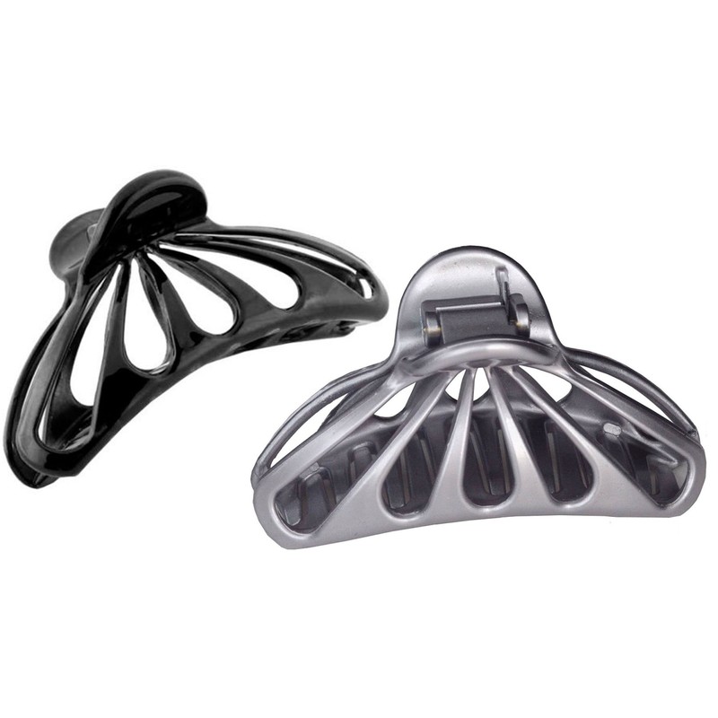 Parcelona French Rain Drop Set of 2 Small Silver Grey and Black Celluloid Jaw Hair Claw Clip with Covered Spring