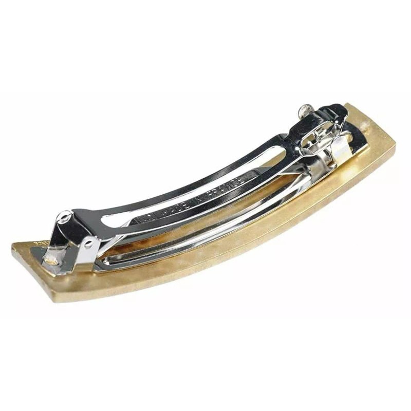 Parcelona French Shiny Rectangle Golden Beige Large Automatic Hair Clip Barrette
