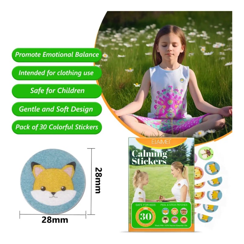 Descubre los Calming Stickers, la solución natural y efectiva para brindar tranquilidad y bienestar a los niños en cualquier momento del día. Estos adhesivos con aceites esenciales naturales están diseñados para reducir el estrés y promover un estado de relajación de forma segura y sencilla. Con un atractivo diseño de animales, son ideales para el hogar, la escuela o actividades al aire libre.