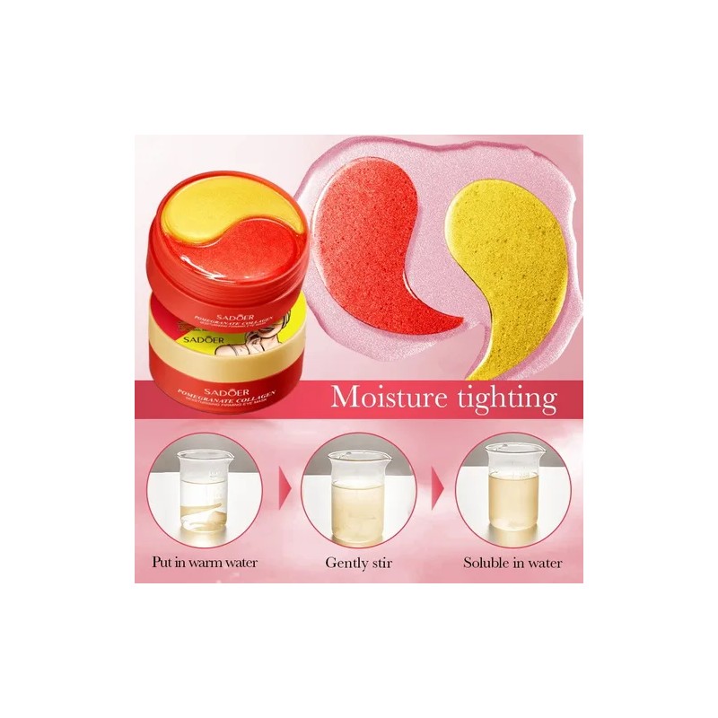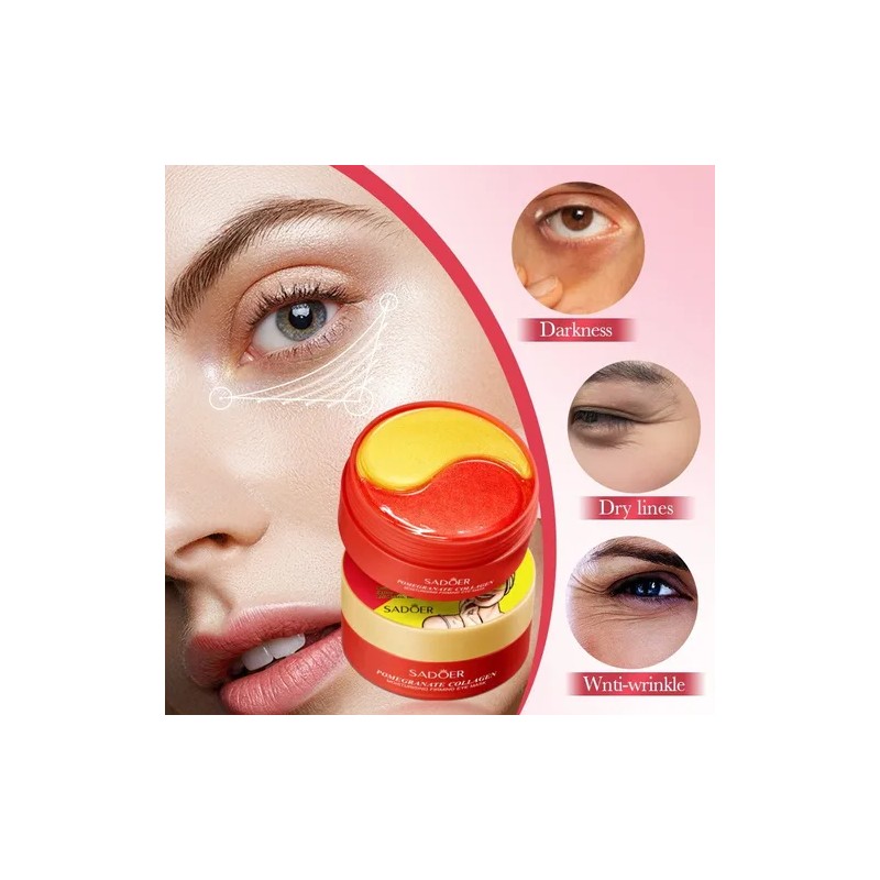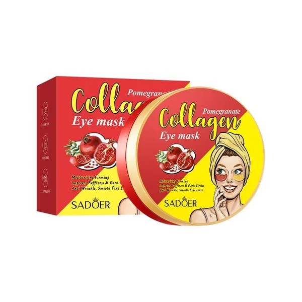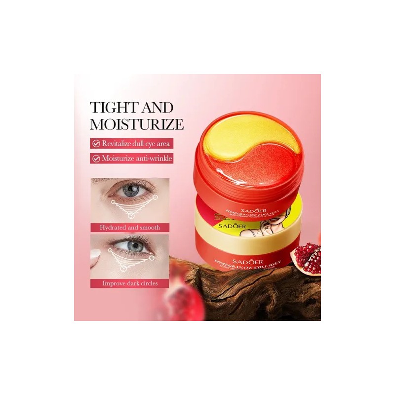 Revitaliza tu mirada con los parches de colágeno para ojos Sadoer con extracto de granada, ideales para hidratar, reafirmar y combatir los signos de fatiga. Su fórmula rica en antioxidantes y colágeno ayuda a disminuir bolsas, ojeras y líneas finas, dejando la piel suave, luminosa y descansada.