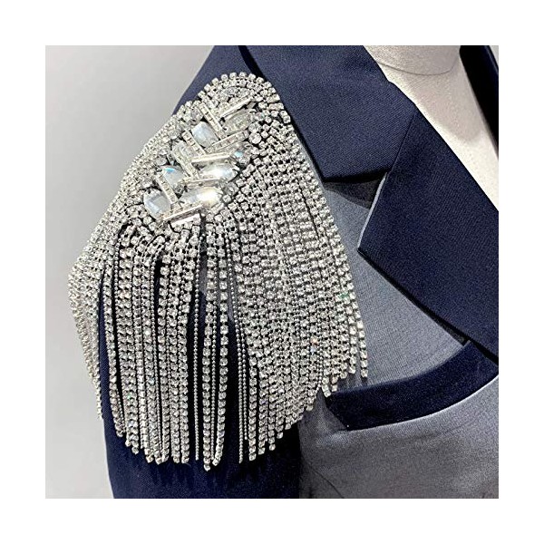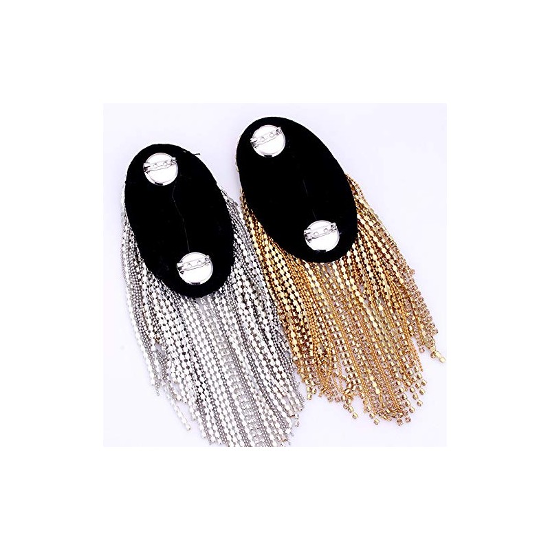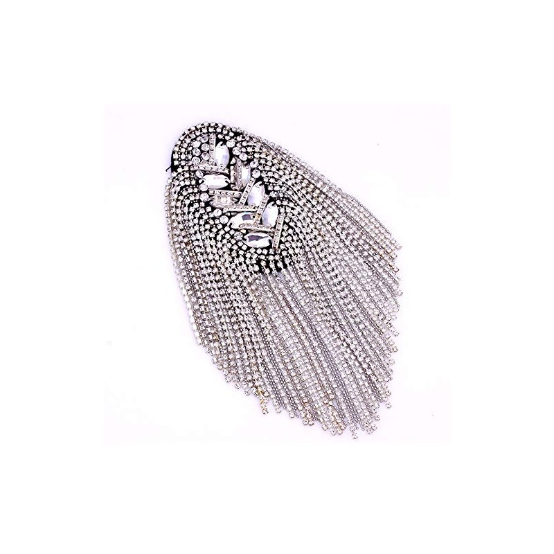 Parches de vidrio con abalorio en los hombros, con flecos, borlas, broches, 2 piezas (plata)