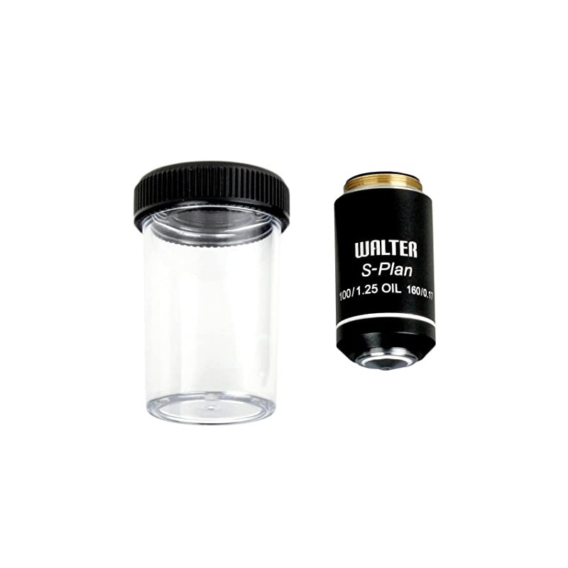 - This 100X achromatic semi-plan objective lens fits all DIN standard compound microscope.