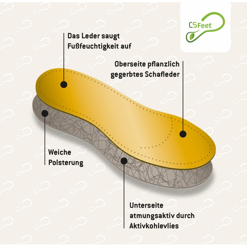 - This sole made of genuine sheepskin leather on an activated carbon base keeps your feet cool and dry