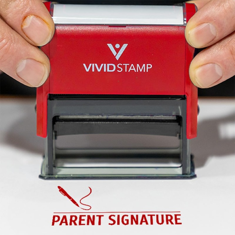 Parent Signature Teacher Self Inking Rubber Stamp (Red Ink) - Large 2 Pack