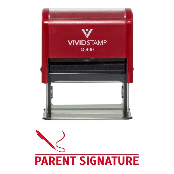 Parent Signature Teacher Self Inking Rubber Stamp (Red Ink) - X-Large 2 Pack