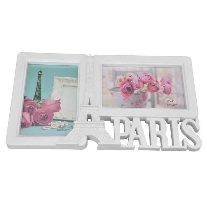 Paris Tower Photo Frame, 2 Pieces, 29.8 x 17 cm, Rectangular Picture Frame with Two Photos for Home Office, Decorative Table Top Wall Mounting