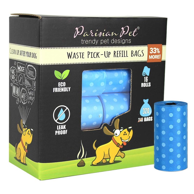 Parisian Pet Ecofriendly Dog Poop Bags Rolls - 320 Count Unscented Poop Bags For Dogs - Leakproof, Extra Thick, 16 Dog Waste Bags Refill Rolls - Polka Dot Blue Doggie Poop Bags - Fits All Dispenser