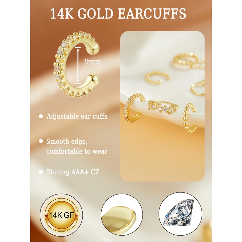 - 💎Hypoallergenic Comfort--Crafted from durable copper with thick 14K gold electroplating, our clip on cartilage earrings resist fading and tarnish. Smooth edges and nickel-free/lead-free materials ensure all-day comfort, even for sensitive ears