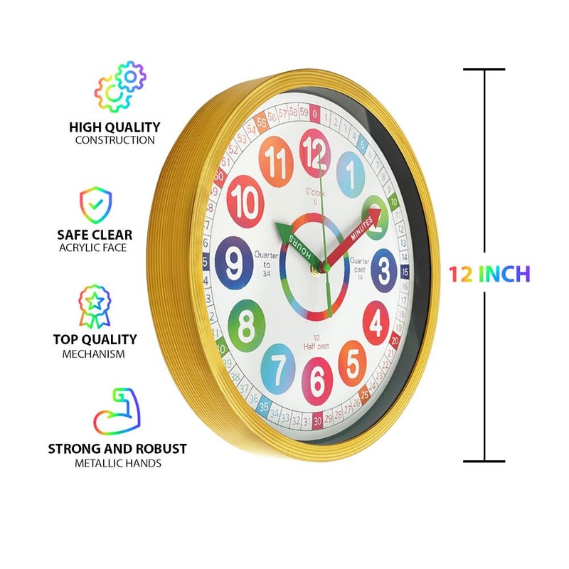 • Designed by Teachers and Parents 🕓 Our 12 inch wall clock for kids has all the information you need to teach time - minutes hands and quarters are labelled making it easy for kids to understand